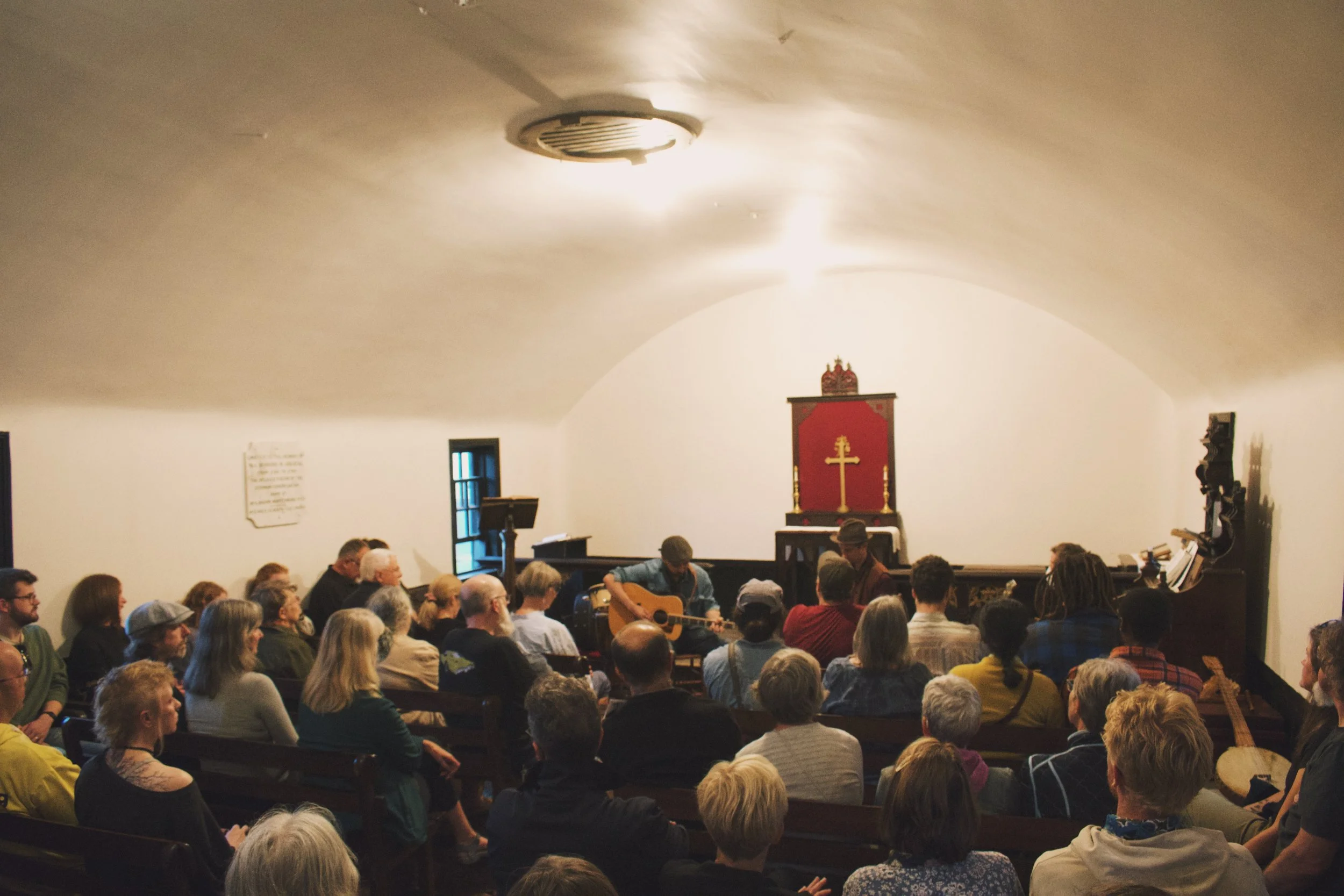 All shows will start at 7 pm, and last no more than 50 minutes to an hour – this gives performers a chance to play a punchy set with an attentive audience, but is mostly due to the total lack of facilities at the Little Dutch Church. Fortunately, we’ve got the Round Church just a few minutes walk away. We have been splitting the door between the artists and the Rector’s Discretionary Fund at St. George’s, which is an emergency fund for people who need to make last-minute rent or power bill payments, who need help with groceries, medicine, or really just about anything. In accordance with the ideals of the original German settlers, entry will be by donation.